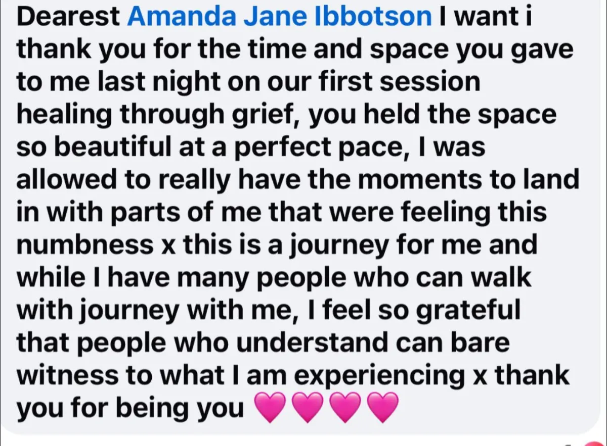While this is a group programme, the live sessions offer a highly supportive and intimate space for healing. Many participants find comfort in connecting with others who truly understand. You certainly will not feel alone anymore. But if 1-1 is something you are interested in please do email me directly: [email protected]