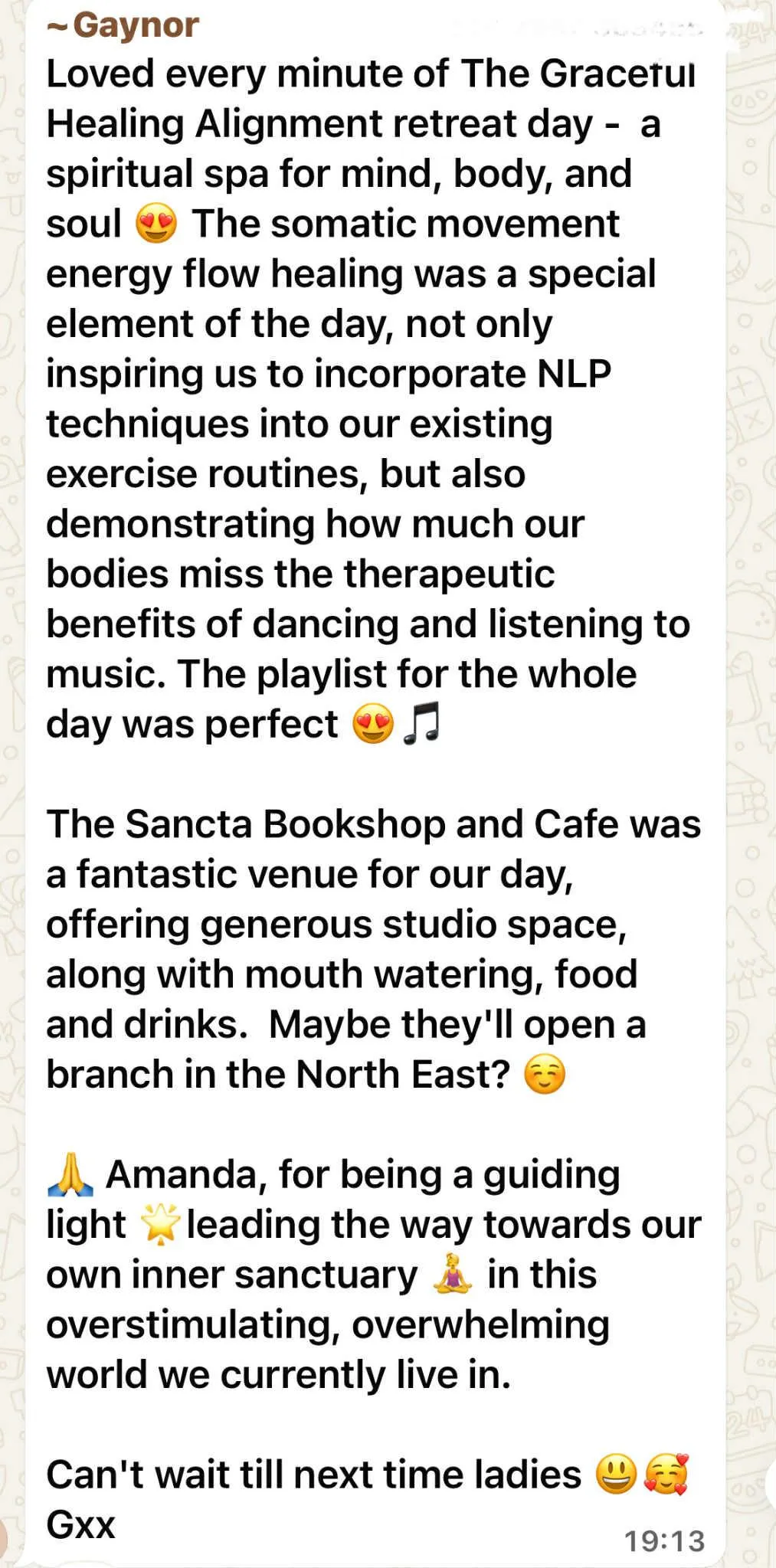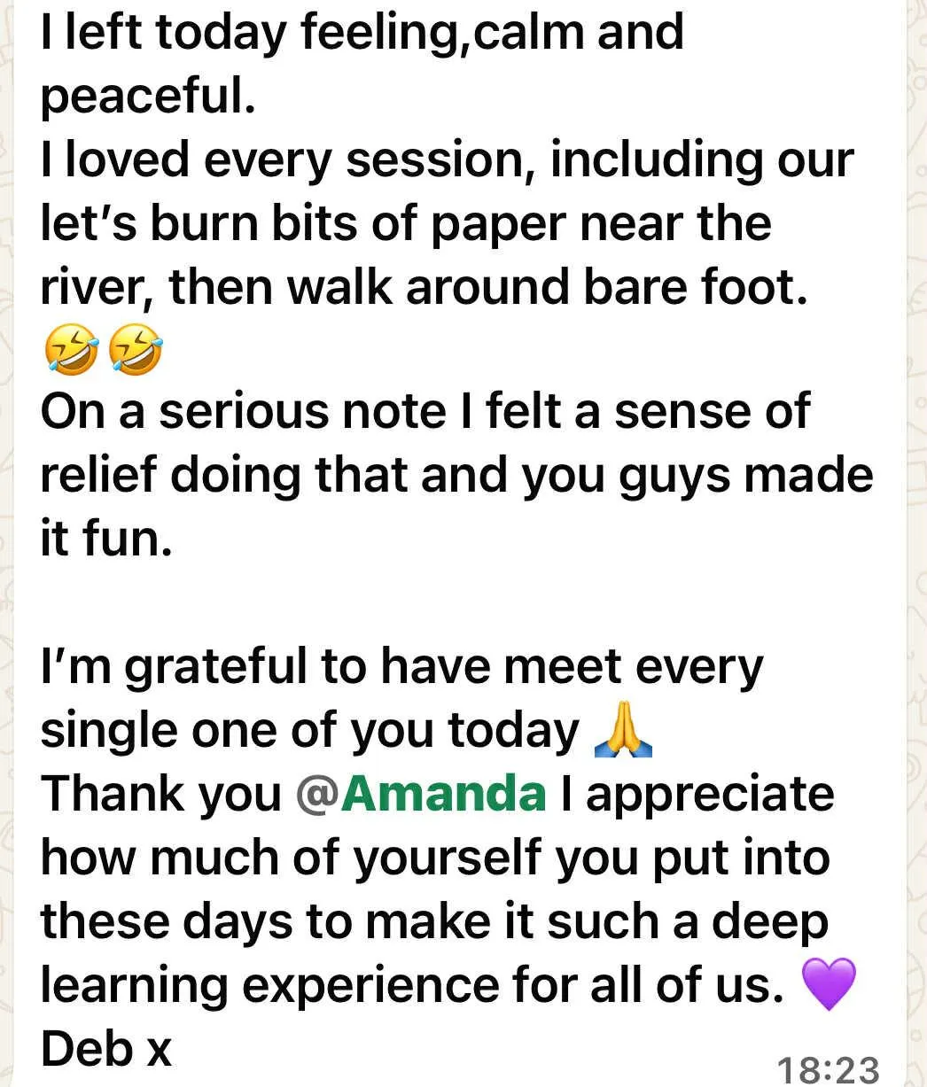 In every space I hold from 1:1 sessions and healing programmes to powerful retreats like this one, I offer a grounded, compassionate, no-BS approach to healing. You won’t find fluff here. Just truth, alignment, and a safe space to finally let go and come home to you.